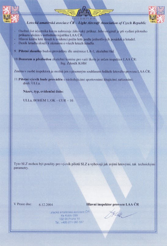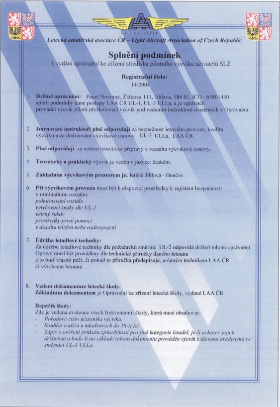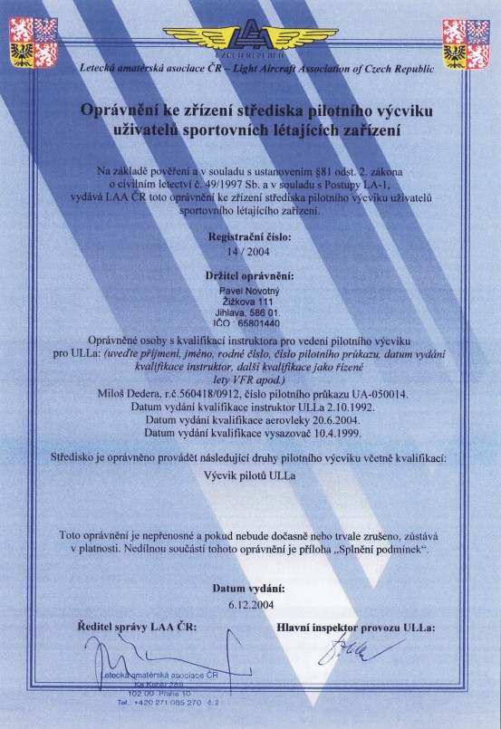 Certifikát_ALLa1 - Oprávnění ke zřízení střediska pilotního výcviku